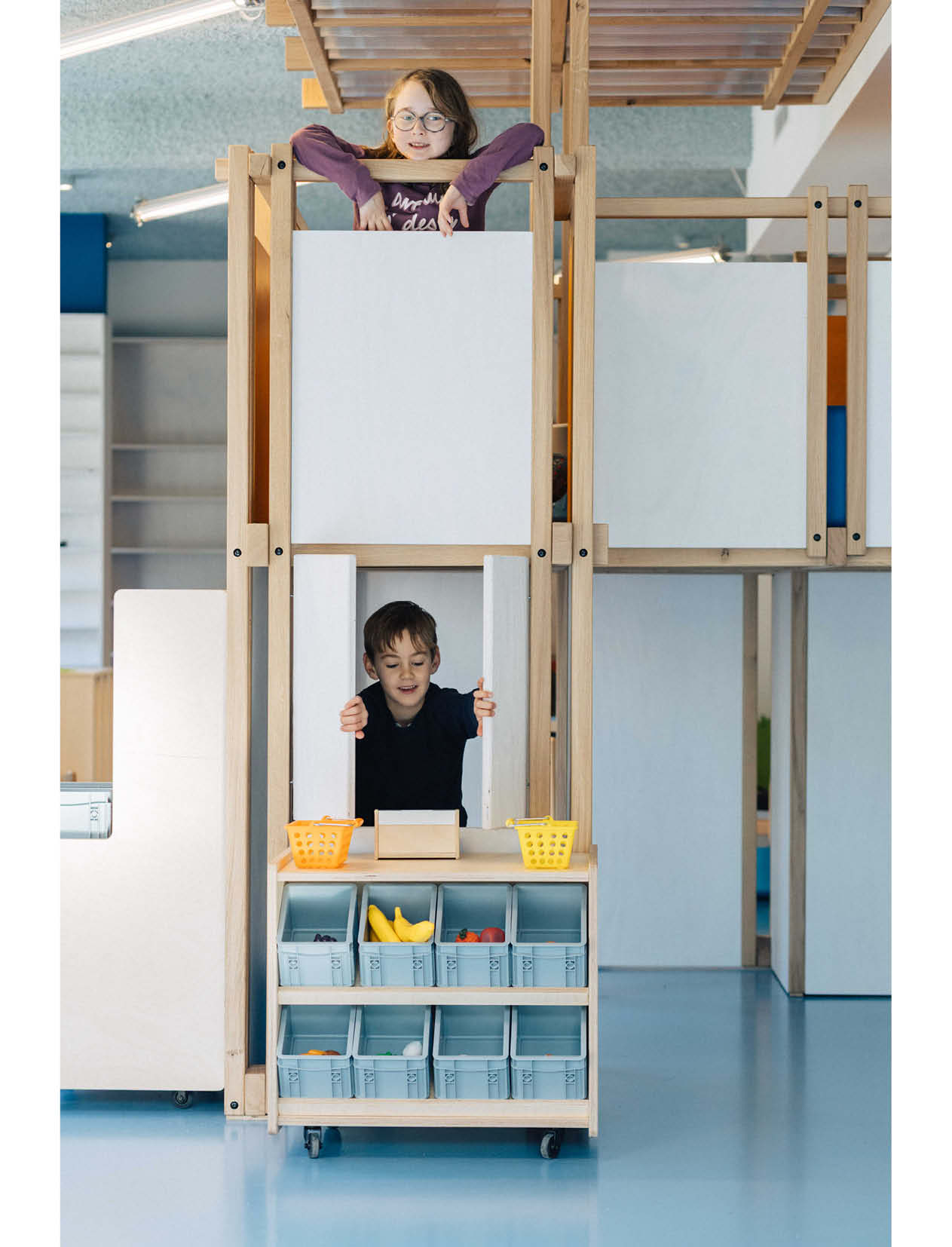 Conception et fabrication d’une mezzanine, pour la ludothèque Nautilude, en plein coeur du 11e arrondissement de Paris. Inspiré de différents univers de l’enfance, le projet s’articule autour d’un parcours qui mènent les enfants dans les différents espace : la tour, le point de vue, la dinette, la marchande…